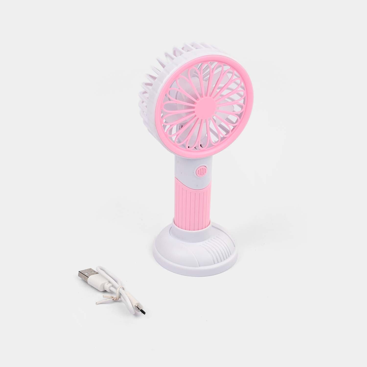 This portable handheld fan features a built-in night light, three-speed settings, and a rechargeable battery with USB charging, perfect for staying cool anywhere.