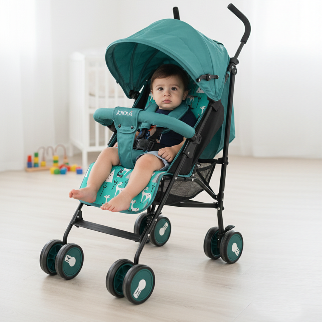 This lightweight baby stroller offers comfort, safety, and convenience for both parents and babies. Built with a sturdy frame, smooth wheels, and a comfortable seat, it ensures a secure and easy ride indoors or outdoors. Its foldable design makes it perfect for travel or everyday use.
