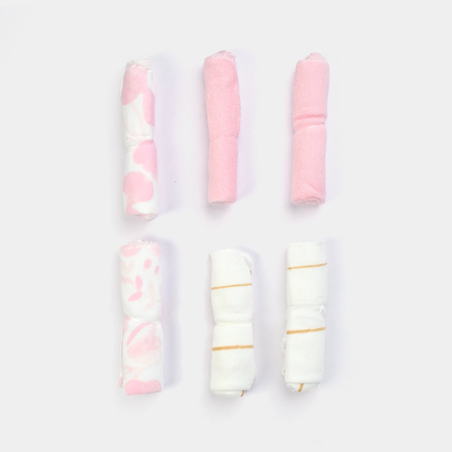 This set includes four soft and absorbent face towels that are gentle on the skin. Whether it's mealtime or a quick wipe-down, they conveniently keep the baby clean.
