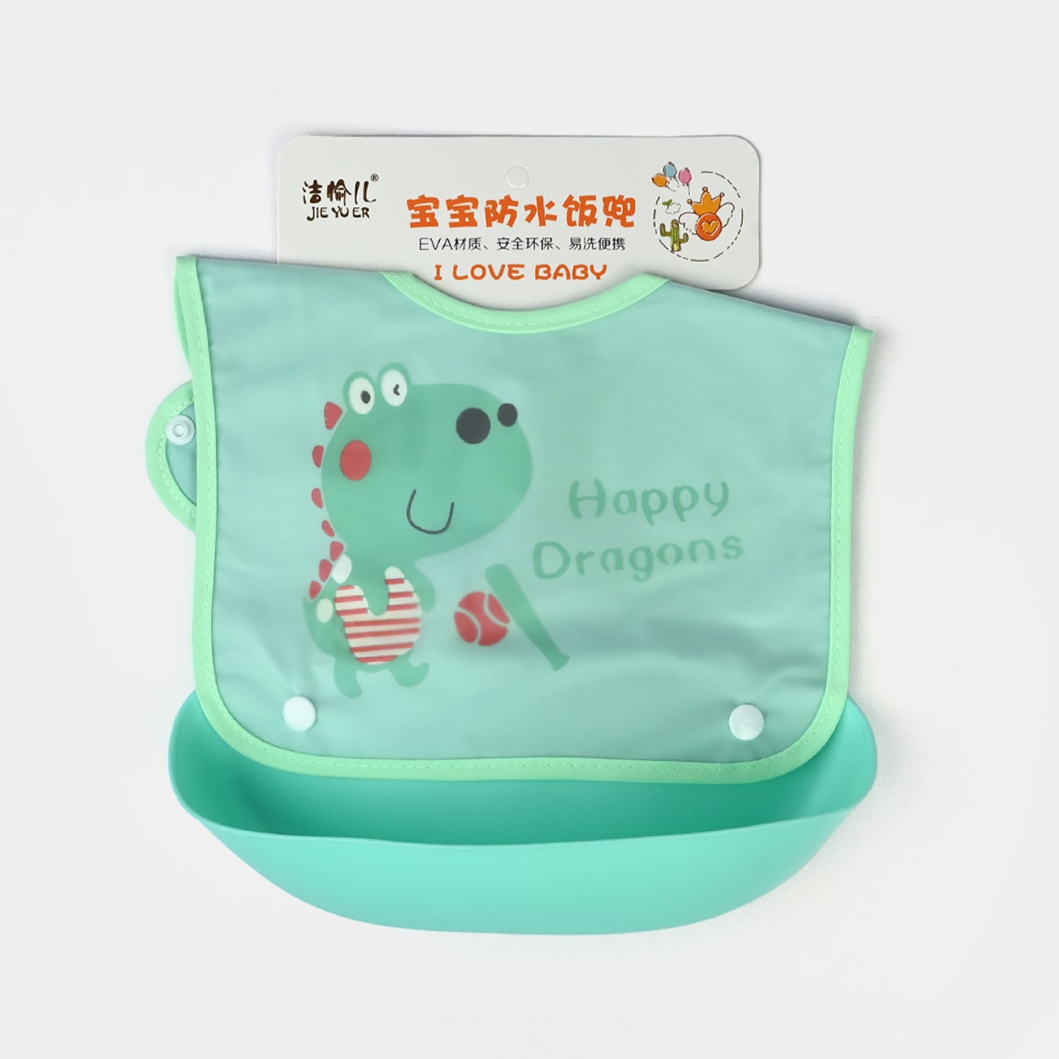 This bib featuring a convenient pocket on the front efficiently collects crumbs and spills, preventing mess and making cleanup a breeze.