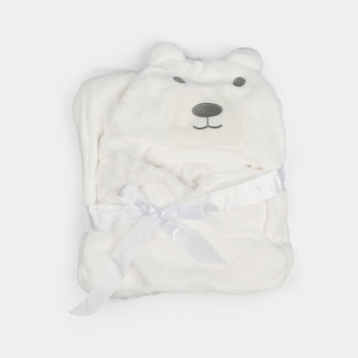 A warm and gentle hooded baby blanket made from soft, comfortable fabric, perfect for keeping your little one snug at home or on the go.