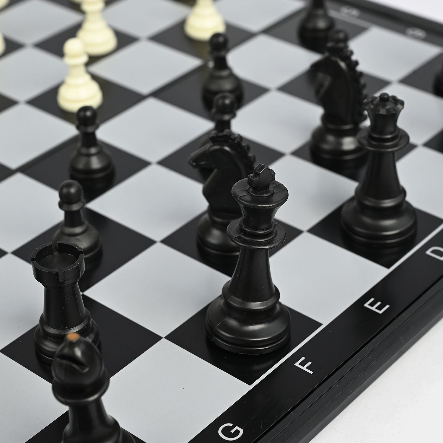 The Magnetic Chess Board Game offers a compact, foldable design with magnetized pieces that stay in place, ensuring stable play anywhere. It's built-in storage makes it ideal for travel and on-the-go use.