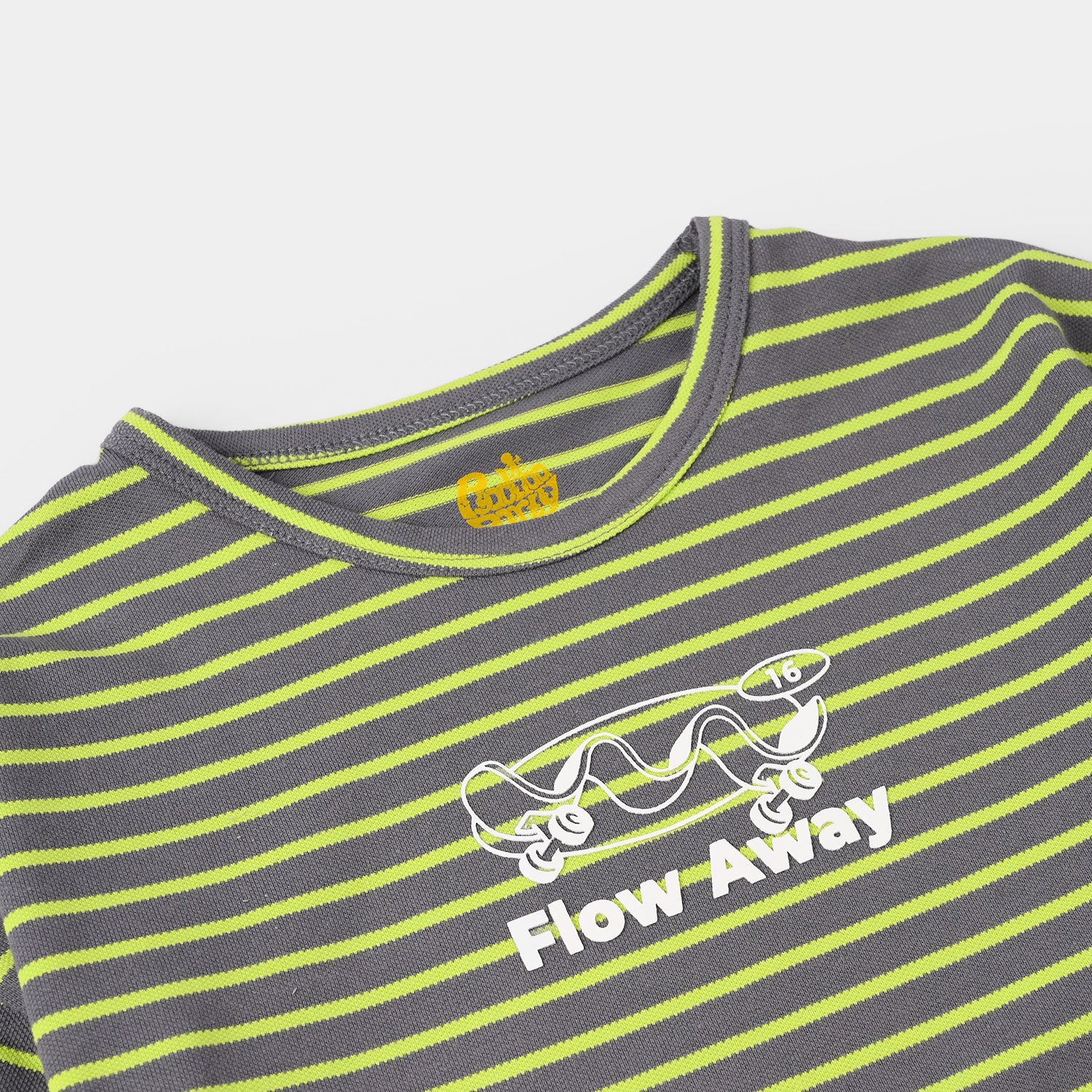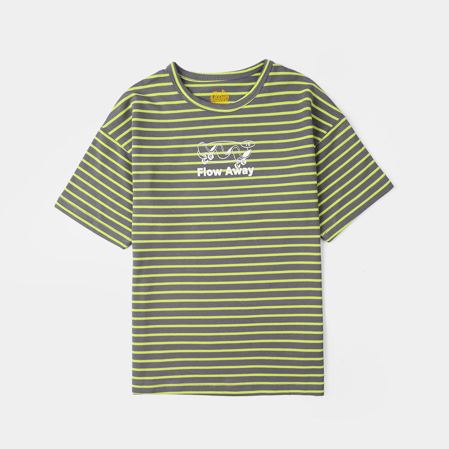 Boys Cotton PK Striped T-Shirt (Flow Away) – Grey/Green