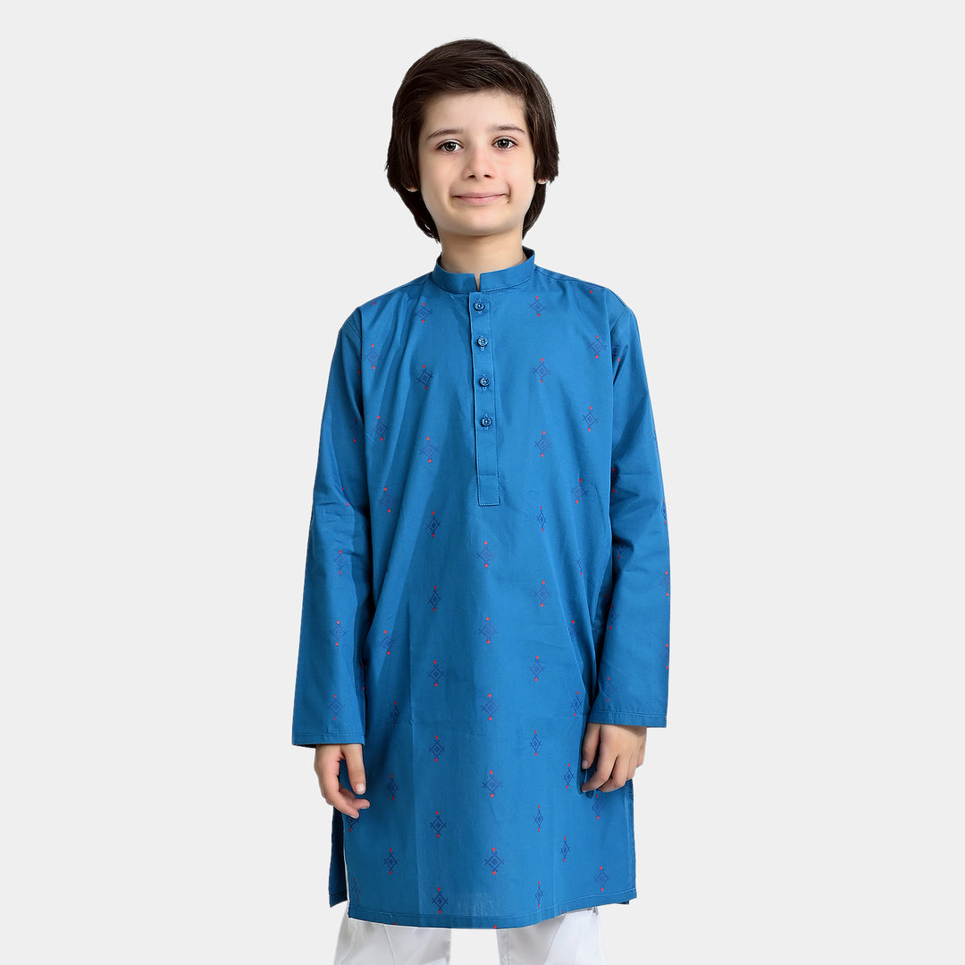 Boys Yarn Dyed Printed Kurta (Pointed Placket)-I/Blue