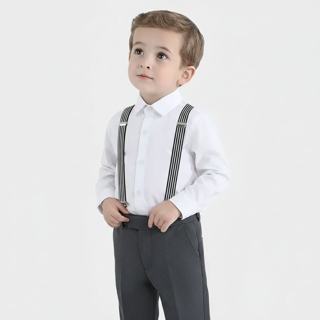 These premium imported elastic suspenders for boys feature a broad, comfortable design with perfect finishing, ideal for casual or formal wear.