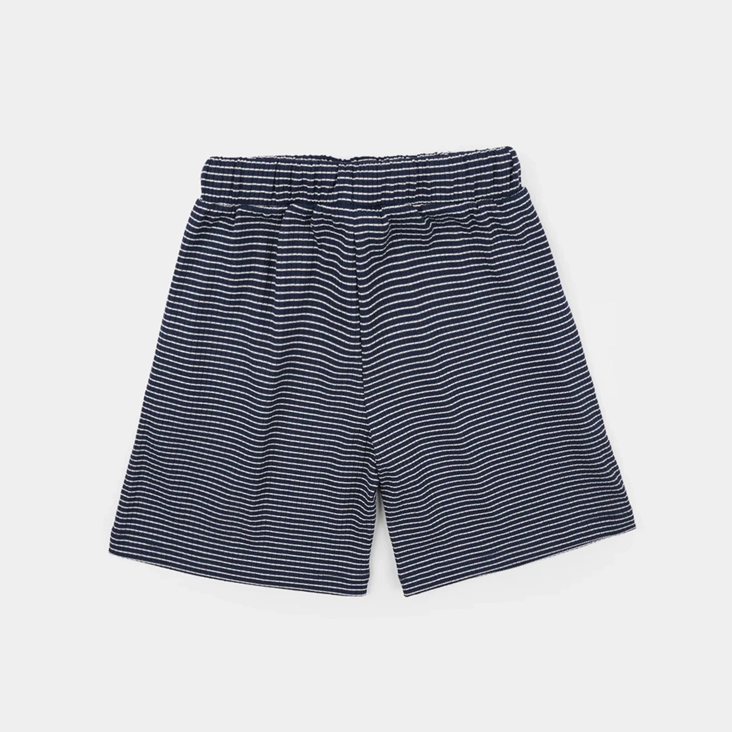 Boys' jacquard shorts in blue stripes feature wave embroidery on the front.