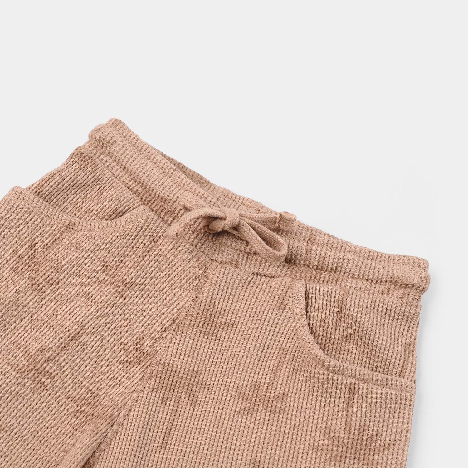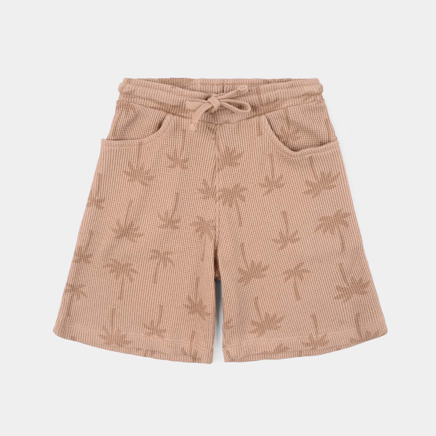 These brown thermal shorts for boys feature pockets and an adjustable waistband, perfect for comfortable and playful everyday wear.