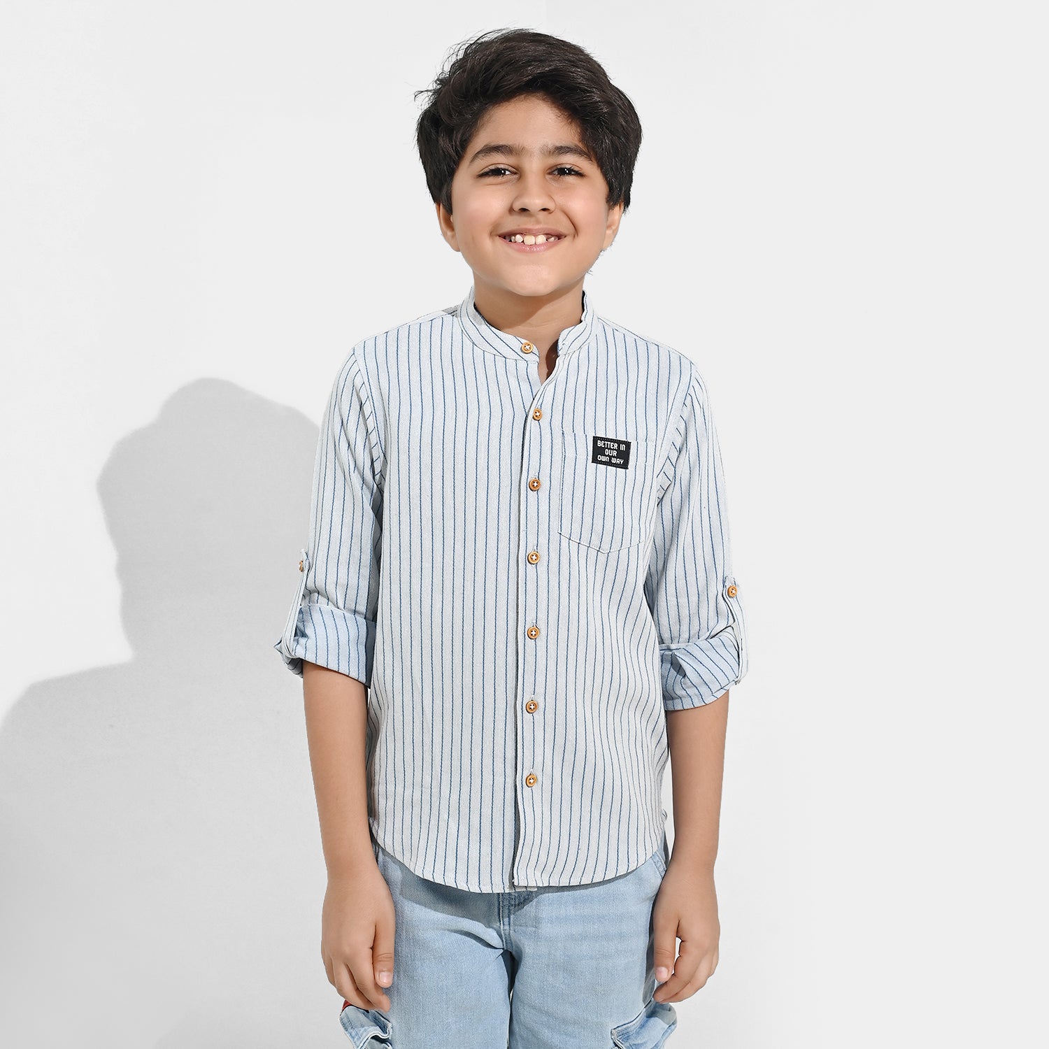 Bachaa Party brings you the best price Boys Yarn Dyed Shirt F/S - Navy Stripe with express shipping all over Pakistan.