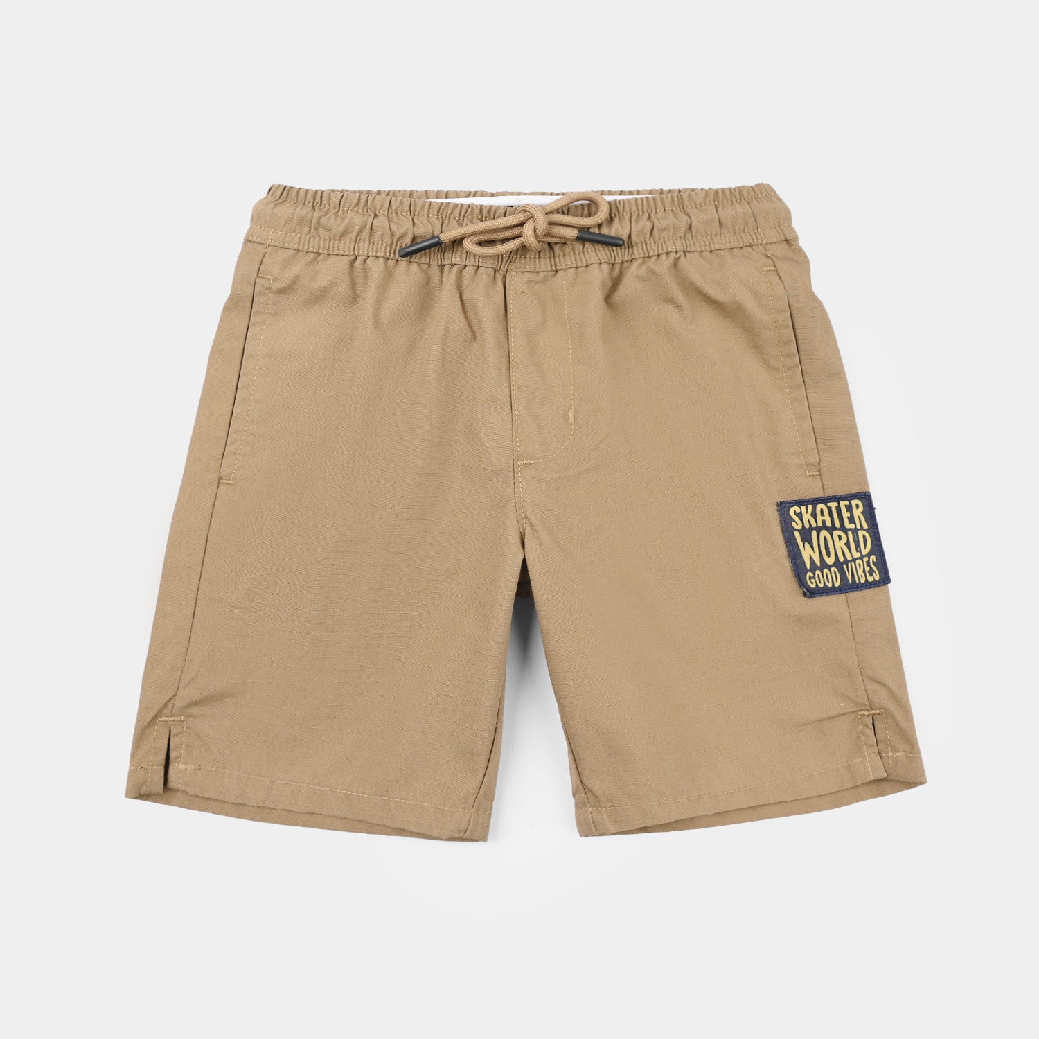 Boys’ brown cotton twill shorts with pockets for a comfortable and casual look.