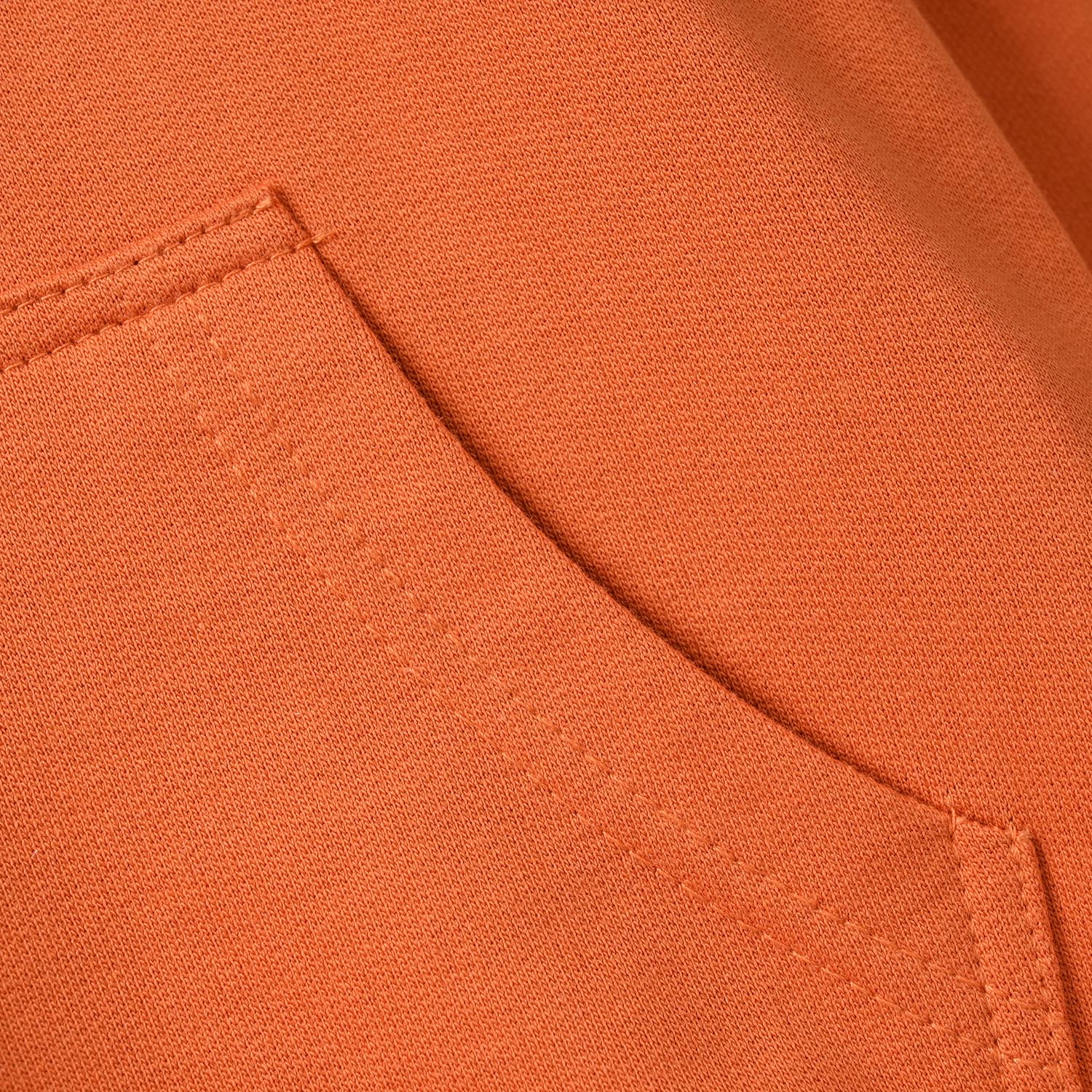 Boys orange shirt featuring an attached hood, full sleeves with hem, and a comfy kangaroo pocket. Soft, stylish, and easy to pair with any bottoms for an everyday look.