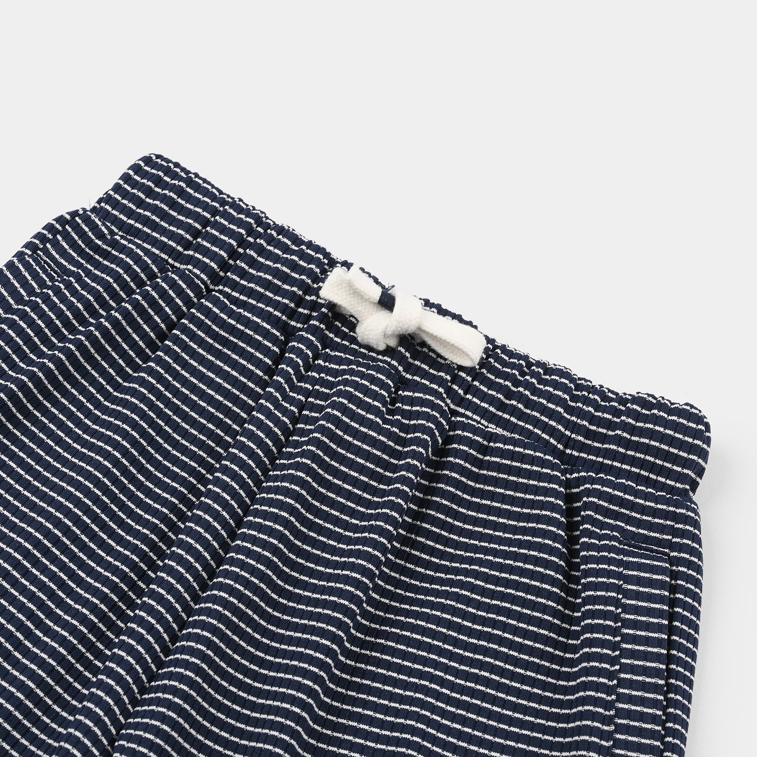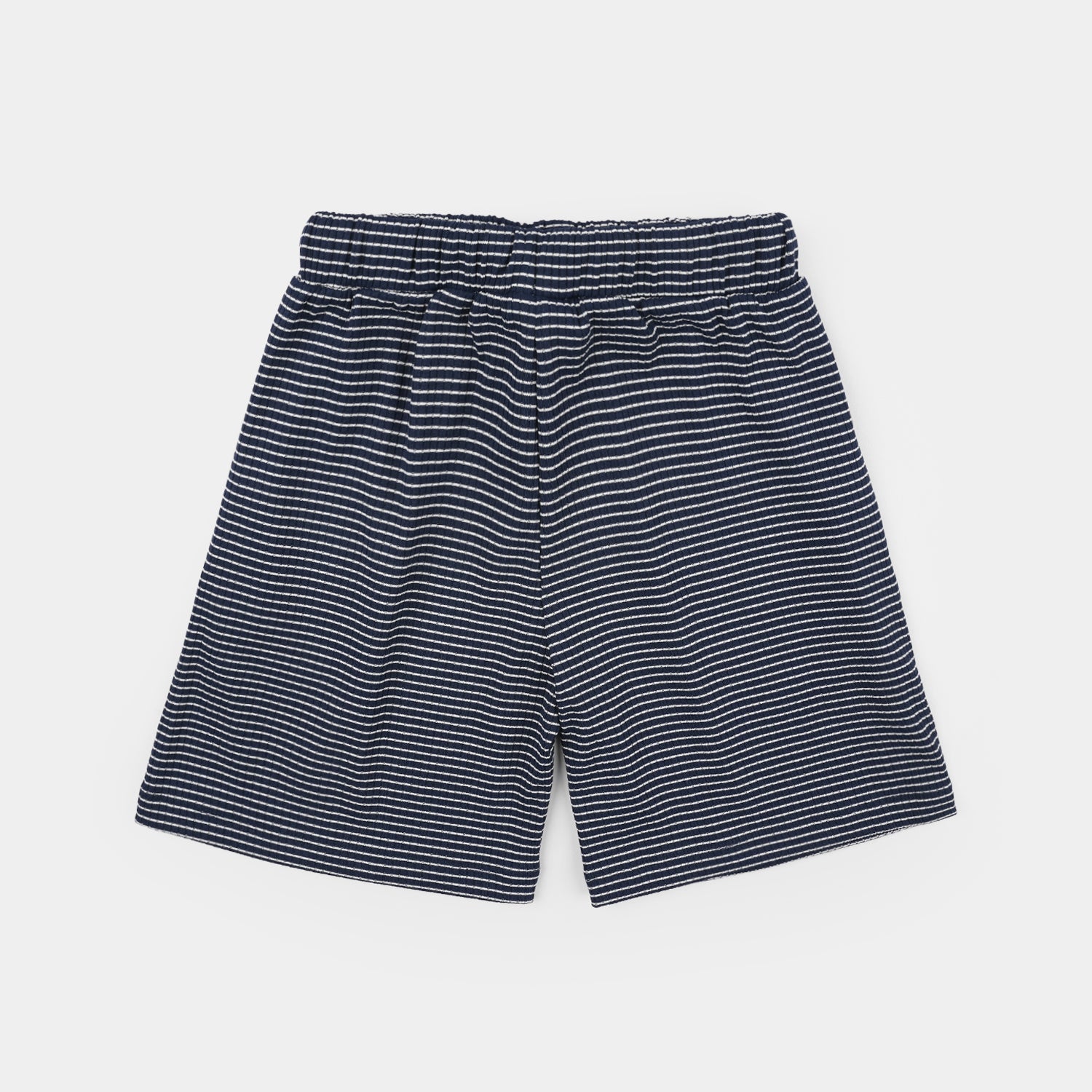Boys' jacquard shorts in blue stripes feature wave embroidery on the front.