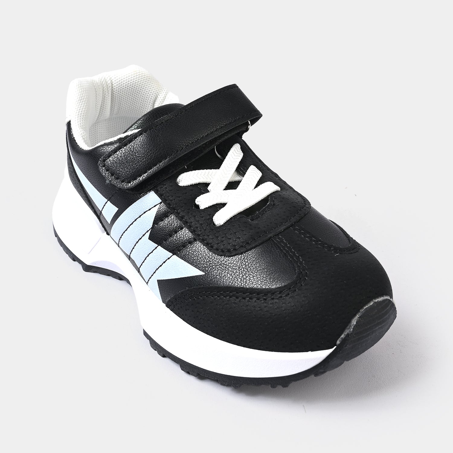 These black joggers feature white laces and a black strap for a secure, comfortable fit. Designed with light blue detailing on the sides, they add a stylish touch and pair easily with any outfit.