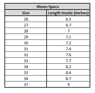 For Shoes: Please allow 0.2 inch +/- tolerance due to manual measurement.