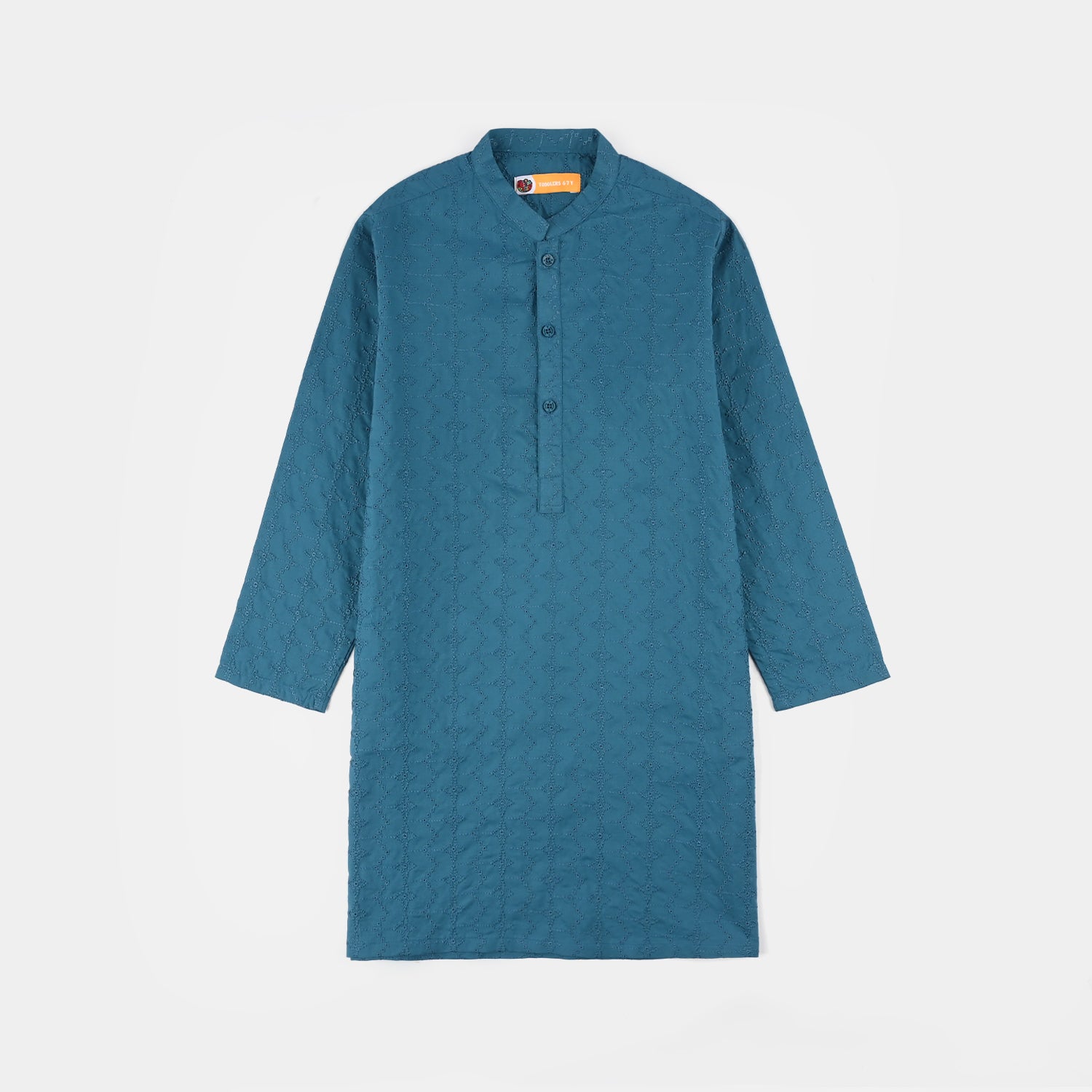 Bachaa Party brings you the best price Boys Cotton Poplin EMB Kurta (Lynos Chicken Kari)-T.Blue with express shipping all over Pakistan.