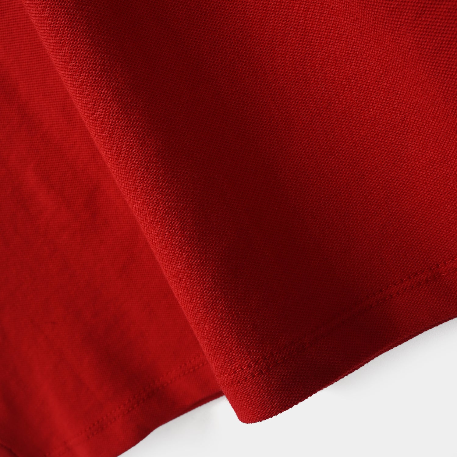 Boys’ red polo shirt featuring a half-sleeve design. Comfortable and perfect for casual wear or sporty looks.