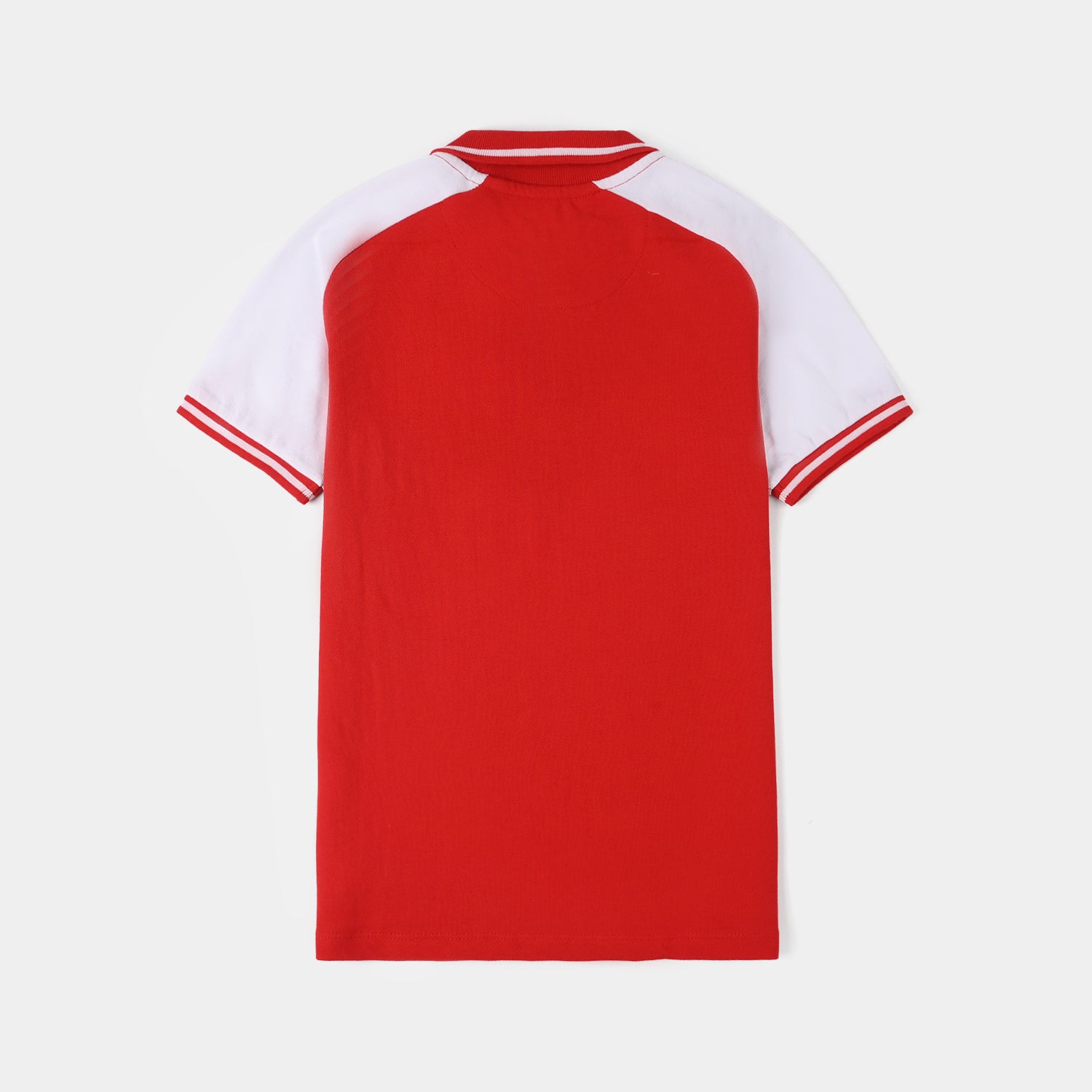 Boys’ cotton PK polo in white and red, featuring a classic design with a “New York” front print and a comfortable fit.