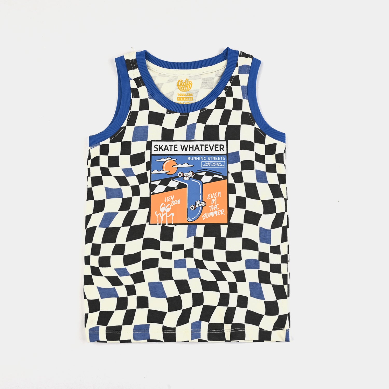 Boys' vanilla ice-colored cotton jersey sando featuring soft stretch fabric and “Skate Whatever” print detailing, perfect for a cool, casual, and comfortable everyday look.