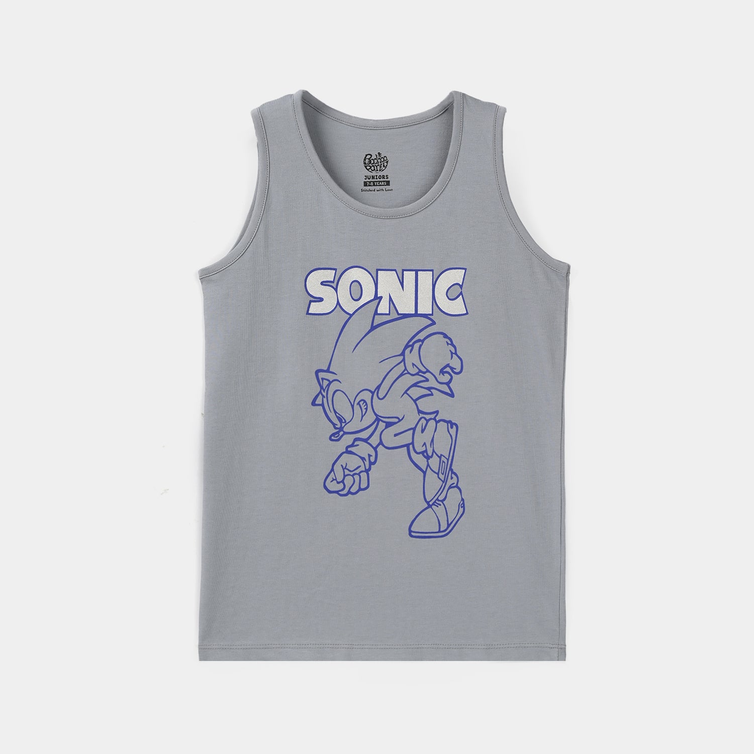 Boys’ slub jersey sando in grey, featuring a Sonic character graphic on the front.