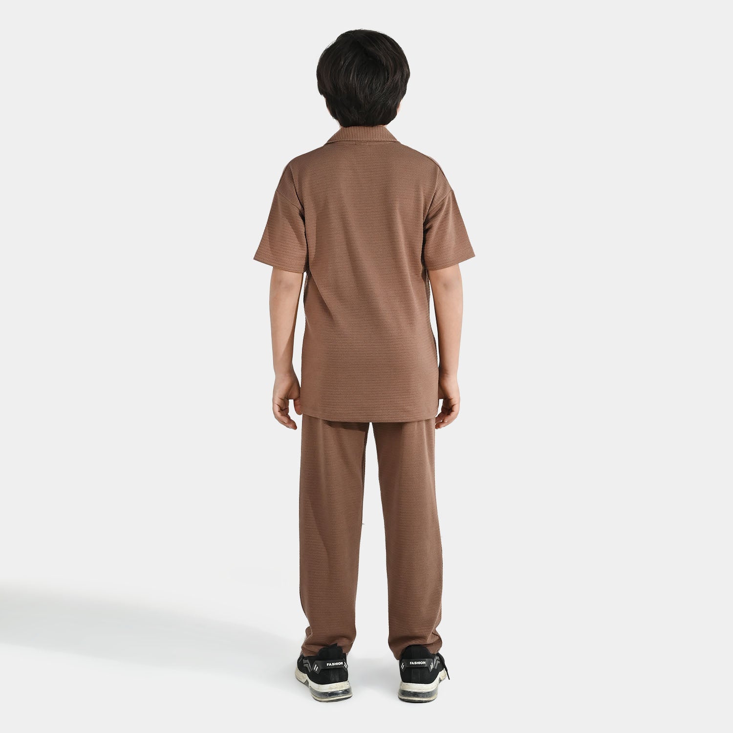 Bachaa Party brings you the best price Boys Poly Jersey 2 Piece Suit MY BALANCE-BROWN with express shipping all over Pakistan.