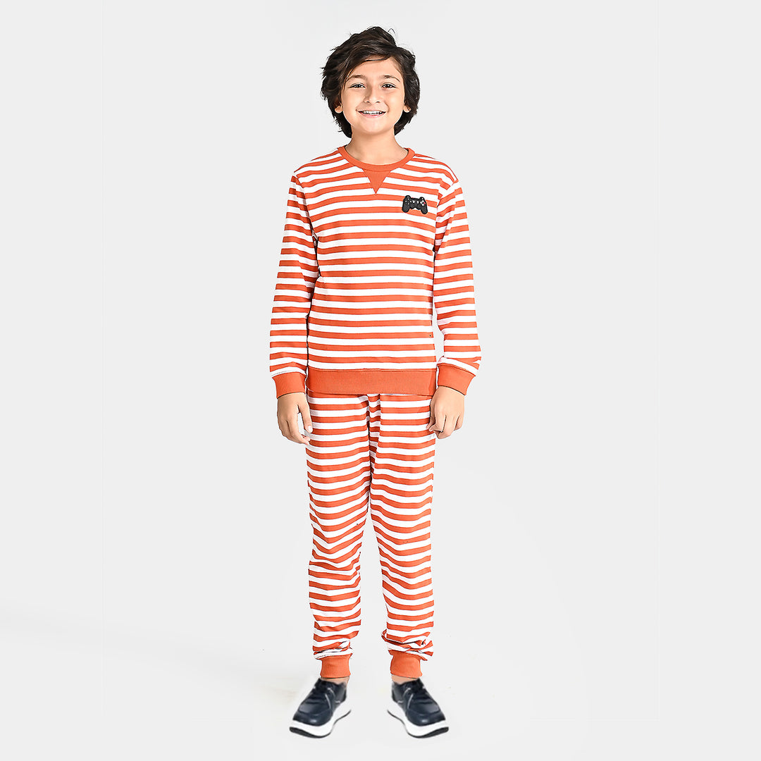 Boys Cotton Terry 2 Piece Suit Games-Orange/White