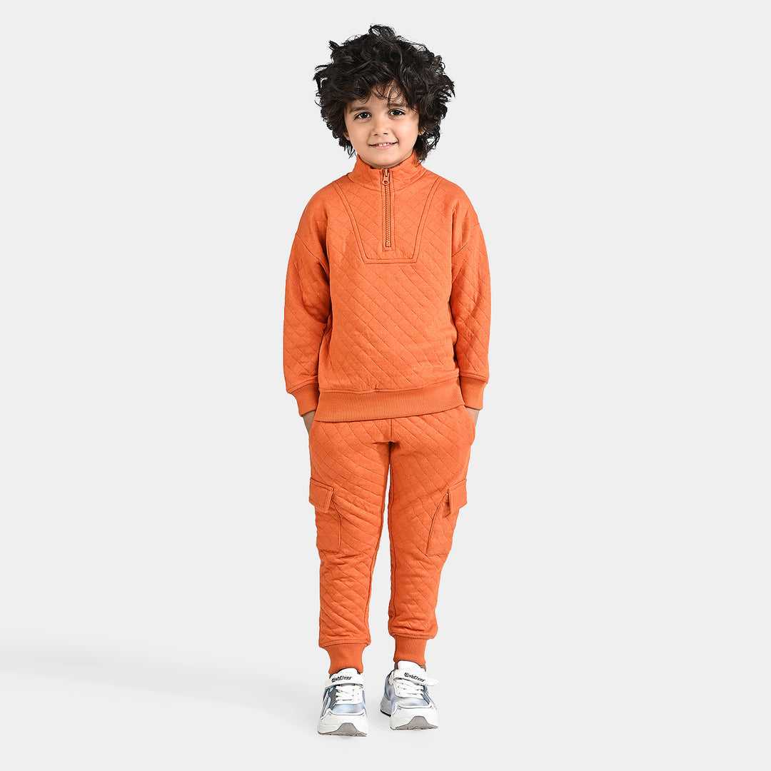 Boys Quilted 2 Piece Suit Apricot Velour-Orange