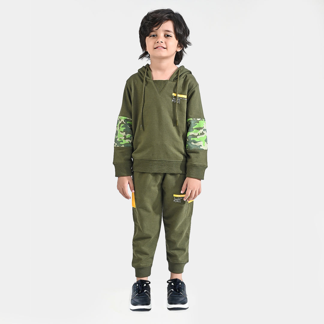 Boys Cotton Terry 2 Piece Suit Connected-Rifle Green