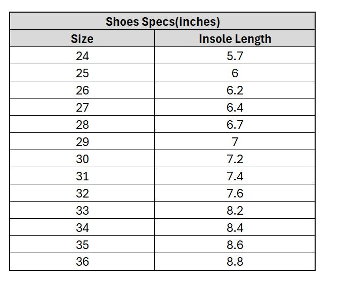 For Shoes: Please allow 0.2 inch +/- tolerance due to manual measurement.
