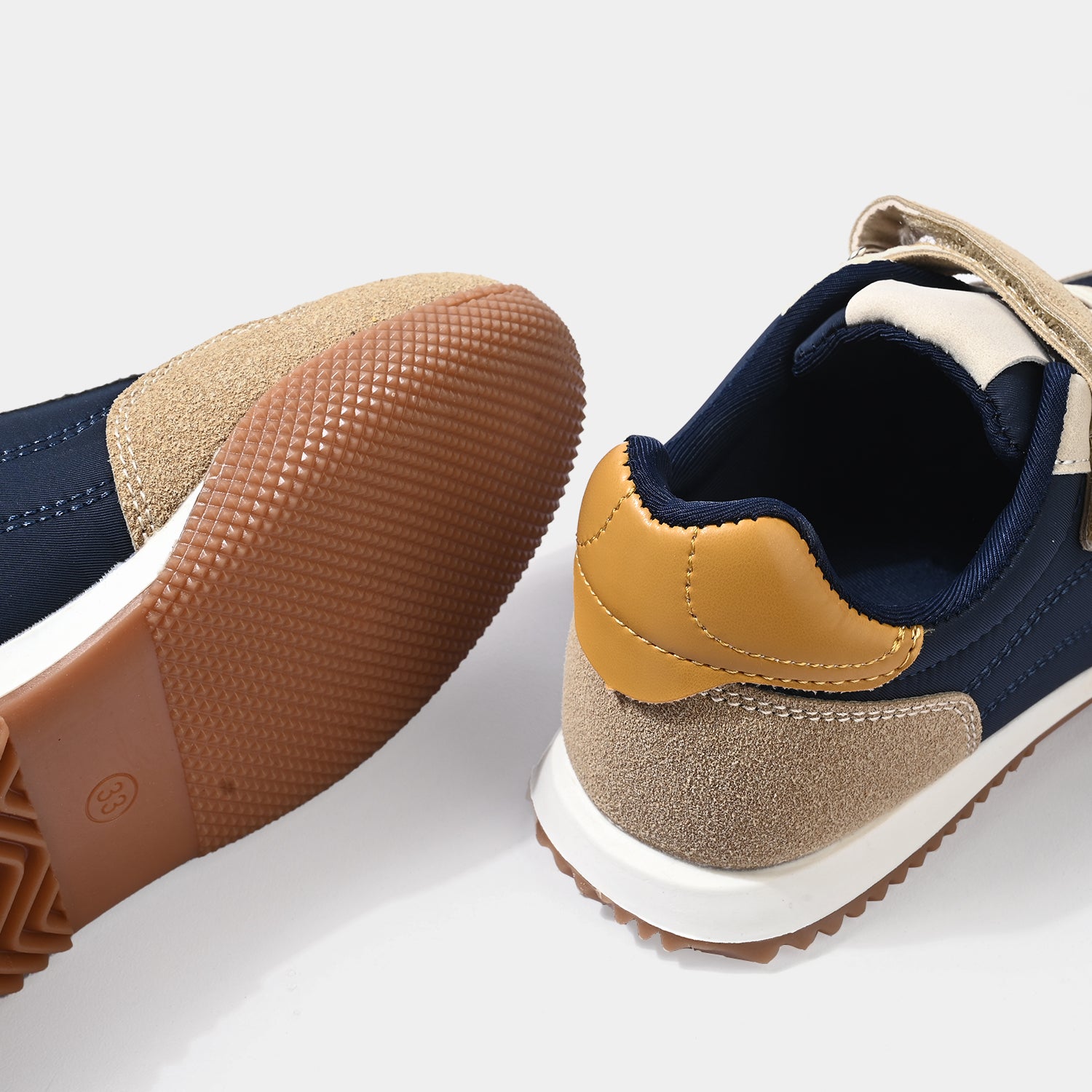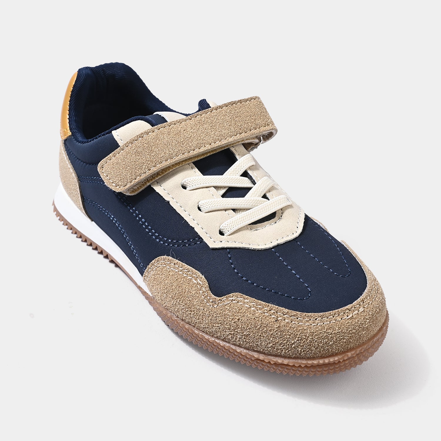 Boys’ navy jogger shoes feature lace-up styling with an adjustable strap and contrast detailing, offering comfort and easy everyday wear.