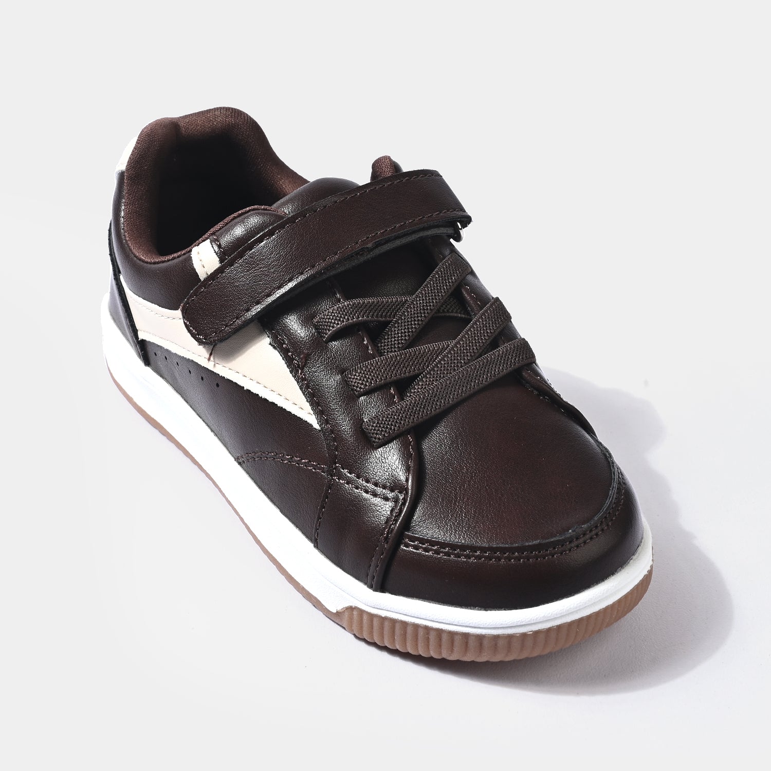 Sneakers feature a sleek matte velvety finish with a contrasting color design, crafted with both laces and an adjustable strap for a secure and stylish fit.