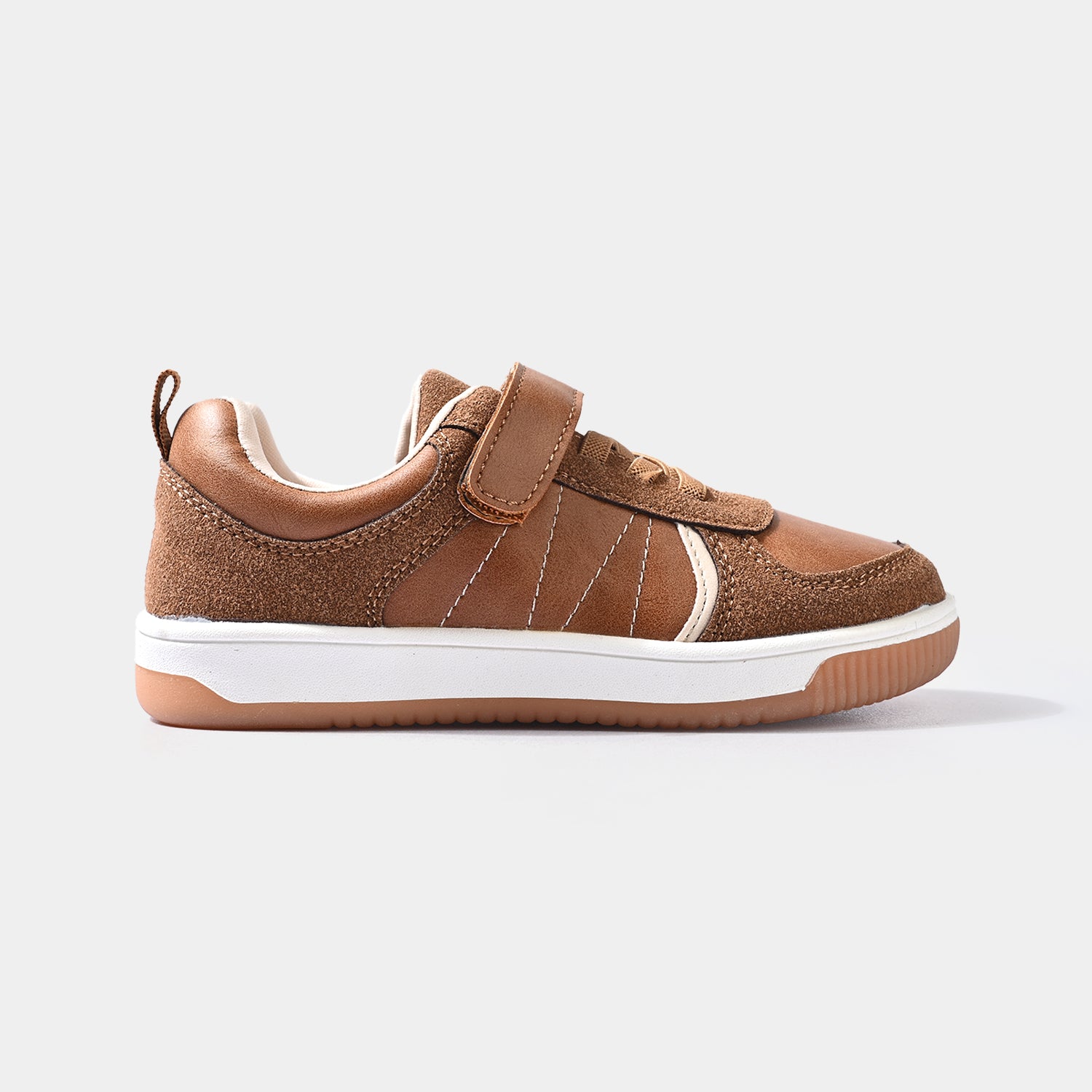 Sneakers feature a sleek matte velvety finish with a contrasting color design, crafted with both laces and an adjustable strap for a secure and stylish fit.