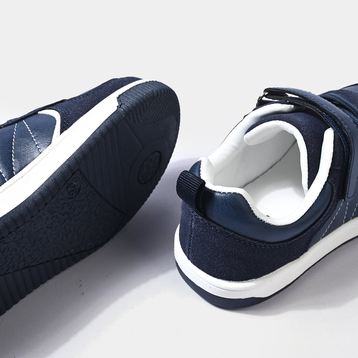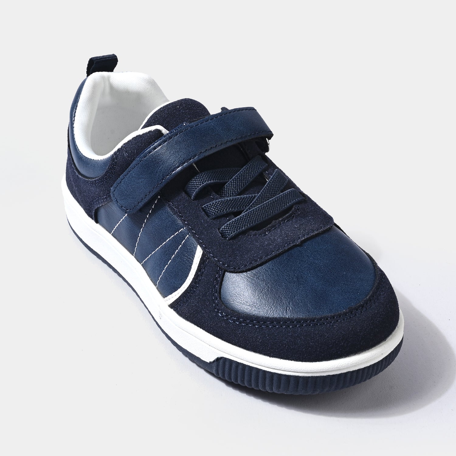 Sneakers feature a sleek matte velvety finish with a contrasting color design, crafted with both laces and an adjustable strap for a secure and stylish fit.