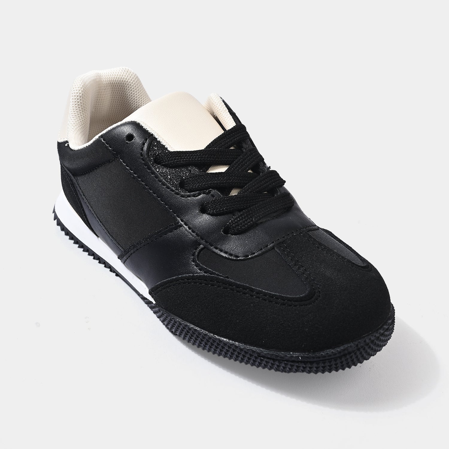 Boys sneakers in black feature a matte finish with lace-up closure for a secure fit and all-day comfort.