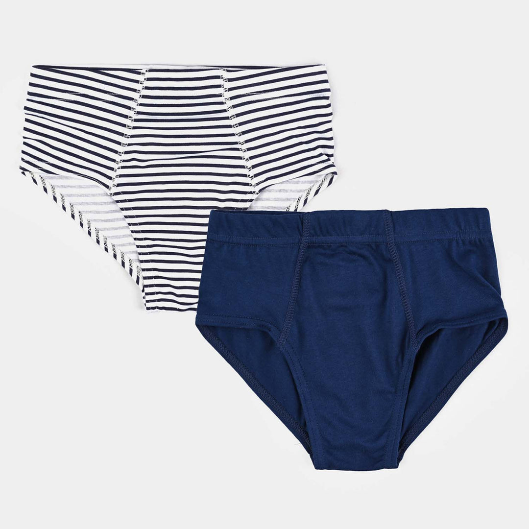 Boys Cotton Jersey Brief Pack of 2 Striper-White/Blue