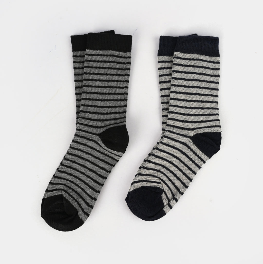Boys Cotton Jersey Boxer Stripe-Pack 0f 2-Black/Blue
