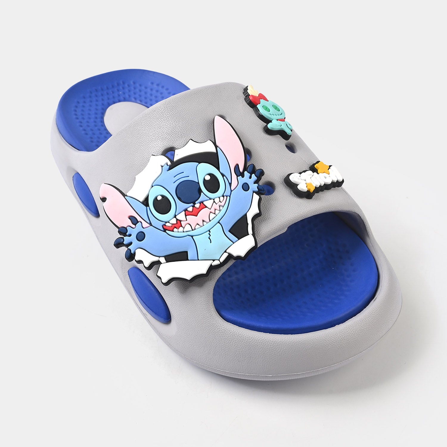 Boys' grey slippers in grey featuring Lilo-themed embellishment and a slip-on design, perfect for a comfortable and playful everyday look.