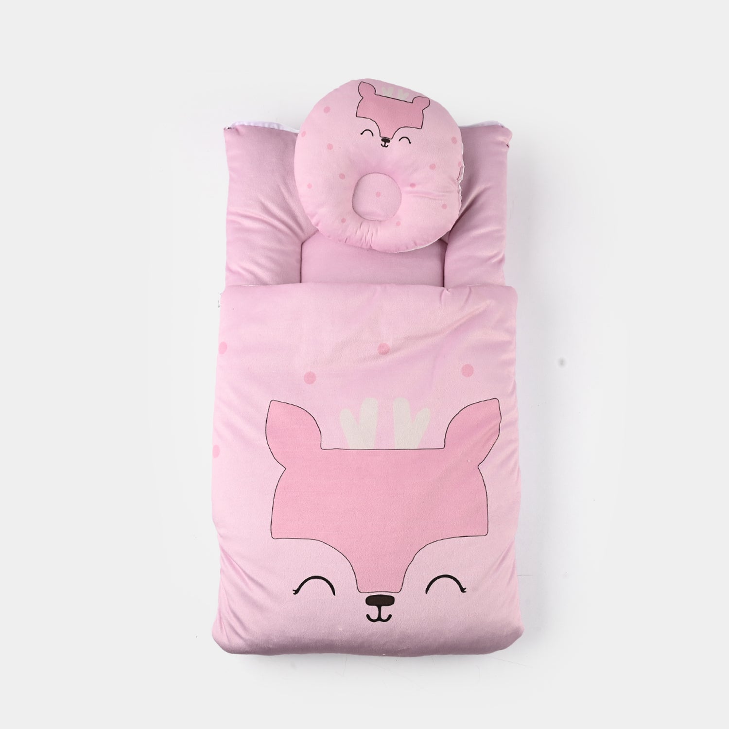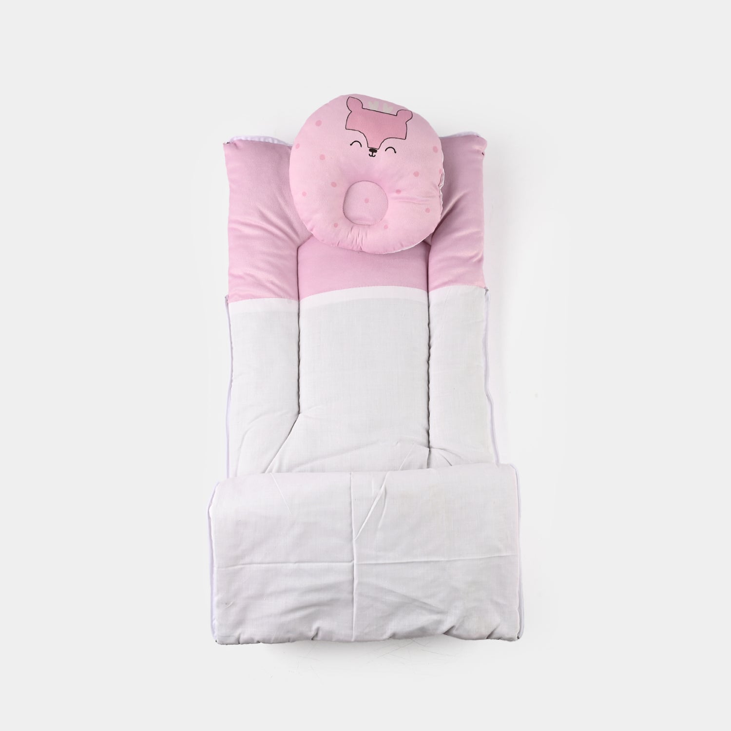Soft baby sleeping mattress set with pillow and head support for everyday comfort.