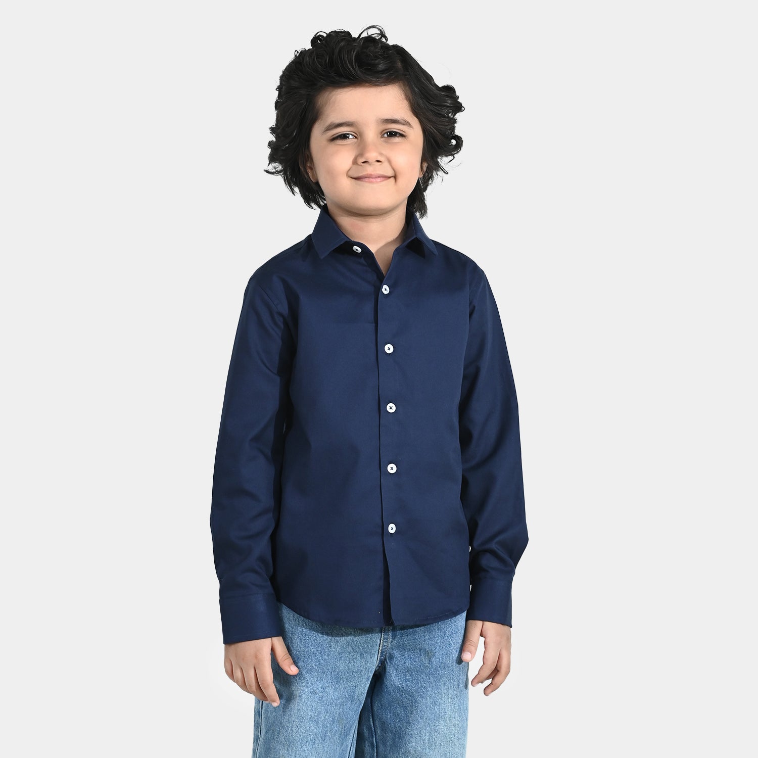 This boys navy yarn-dyed shirt features a classic button-down design, perfect for casual or semi-formal wear.