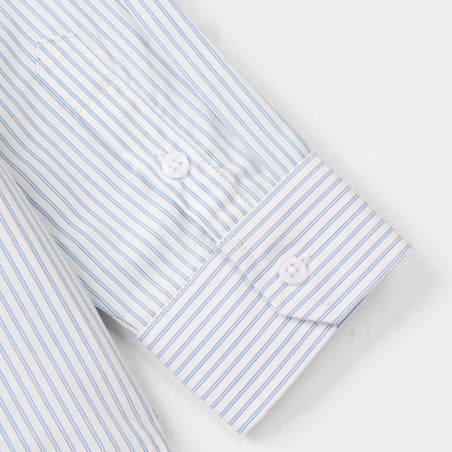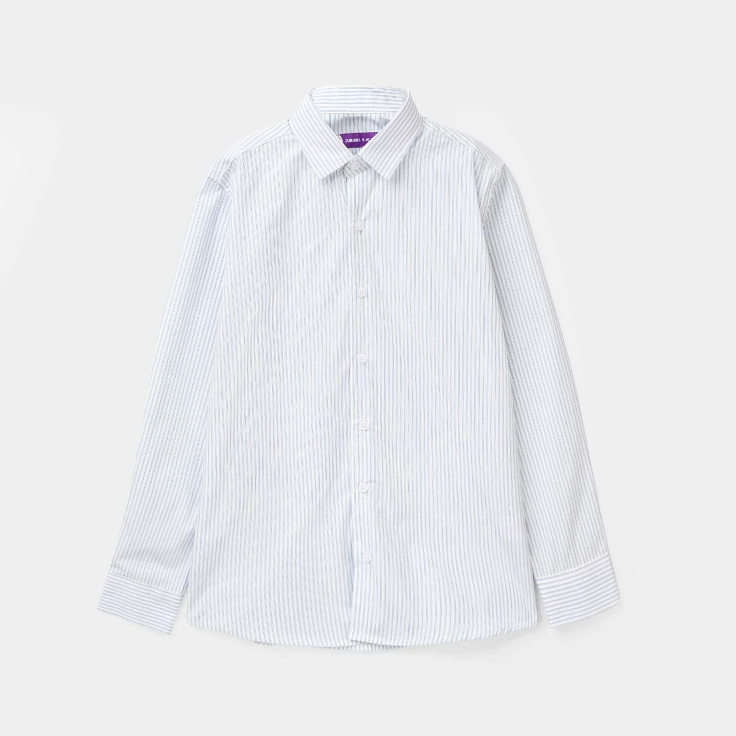 A classic white shirt with blue stripes, perfect for a smart and comfortable everyday look.