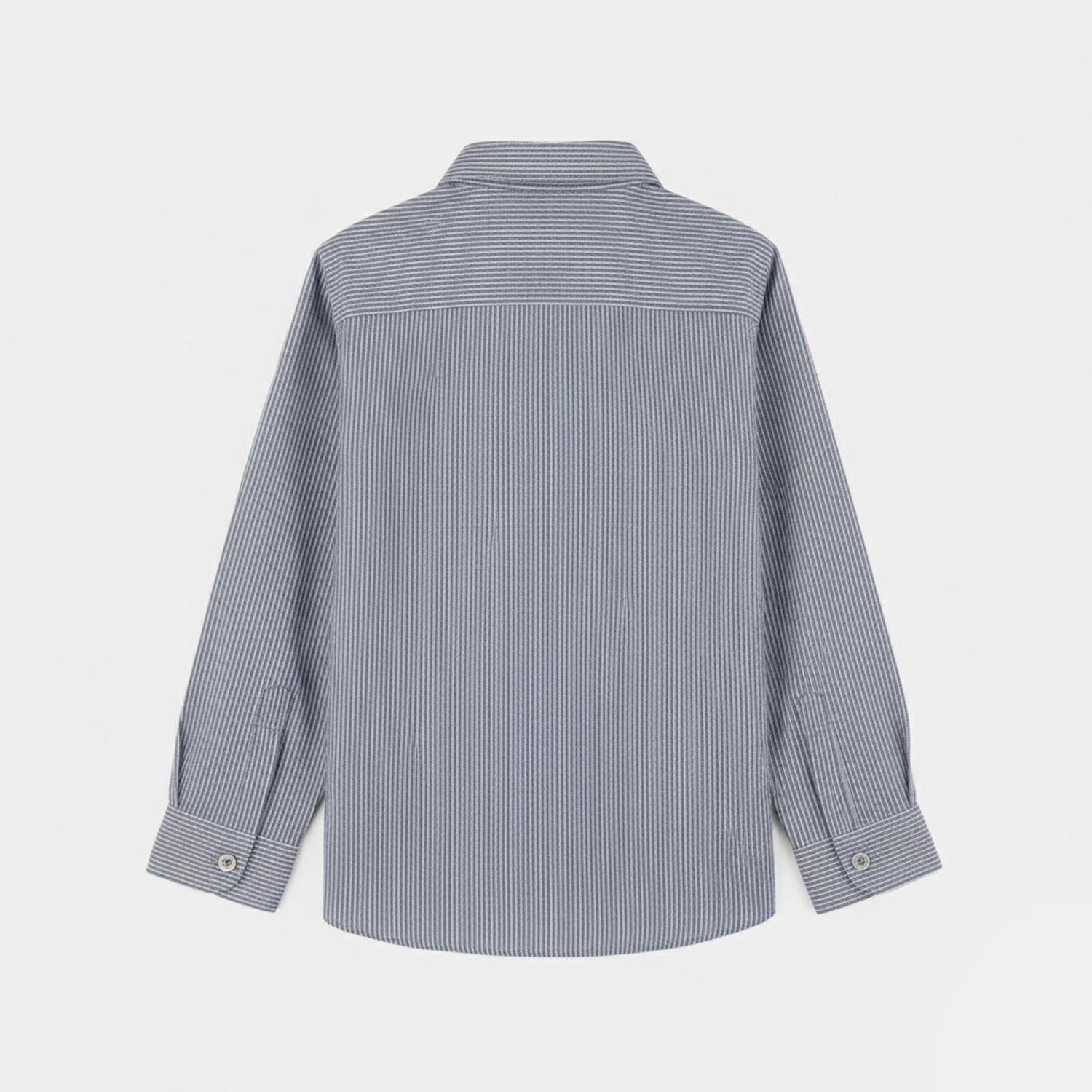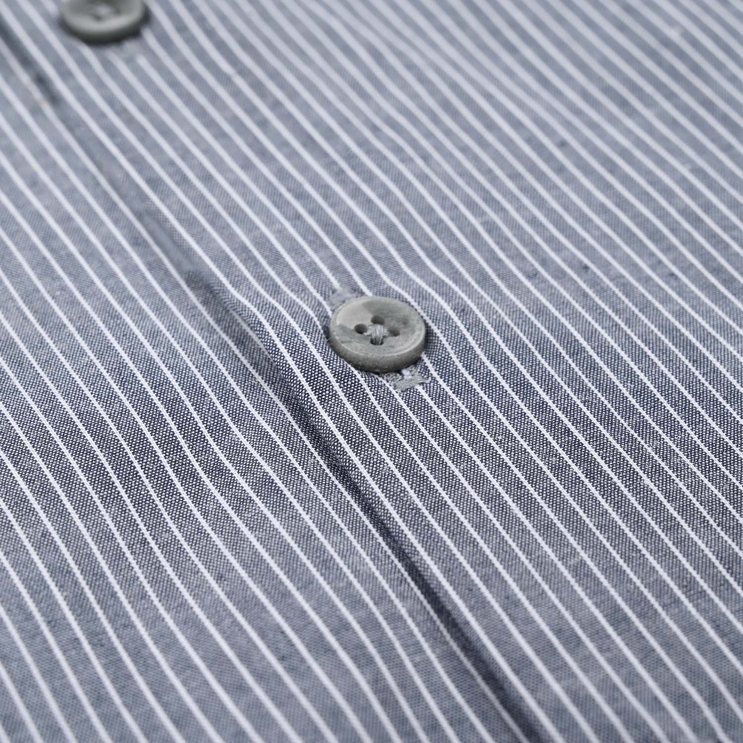 A stylish grey button-down shirt featuring sleek lining/stripes that adds a modern touch to any look.