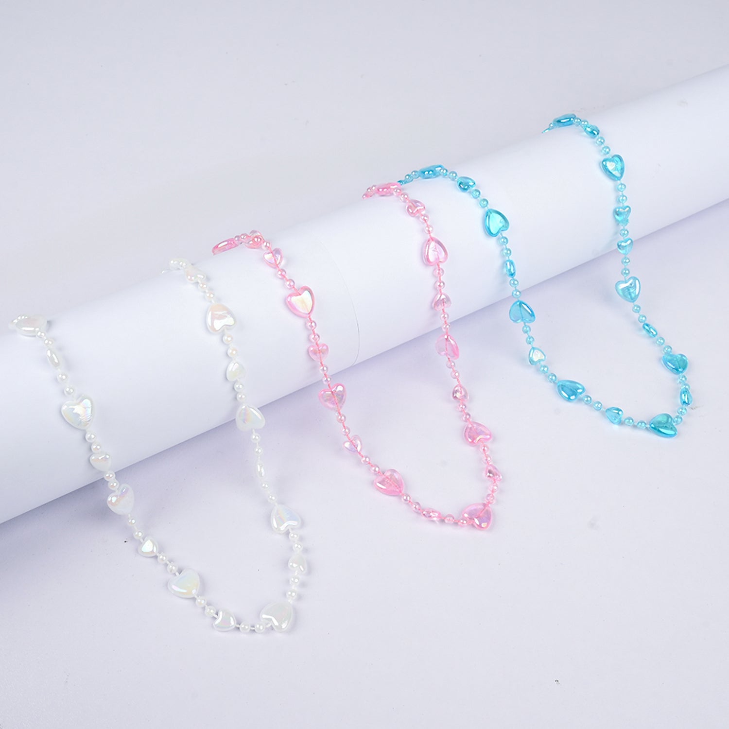 These sweet pastel necklaces feature delicate heart-shaped beads in soft white, pink, and blue. Lightweight and charming, they add a gentle pop of color and a cute, playful vibe to any outfit.