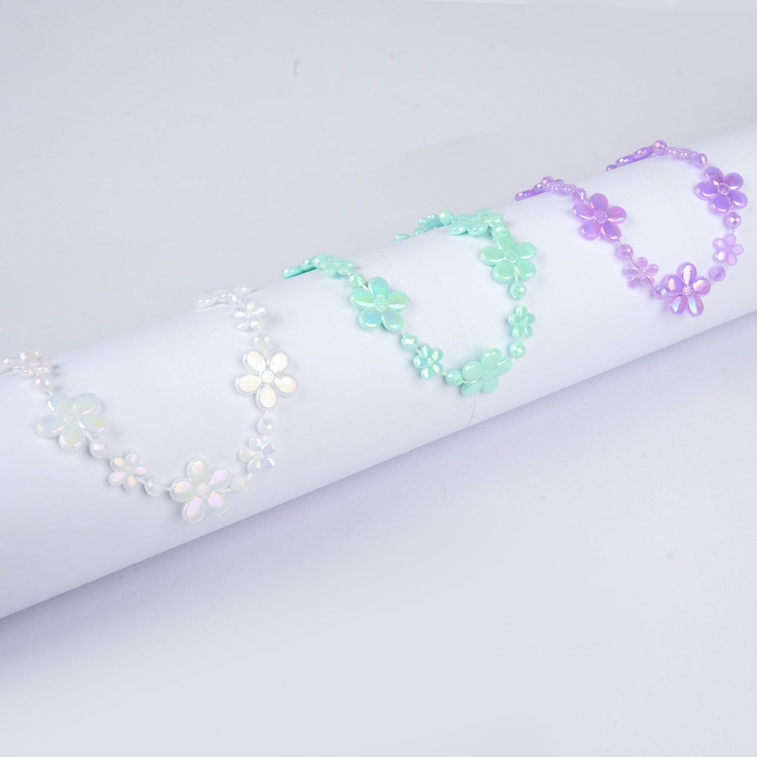 Keep your little one stylish with this charming floral necklace in purple, mint, and white, perfect for adding a playful and colorful touch to any outfit.