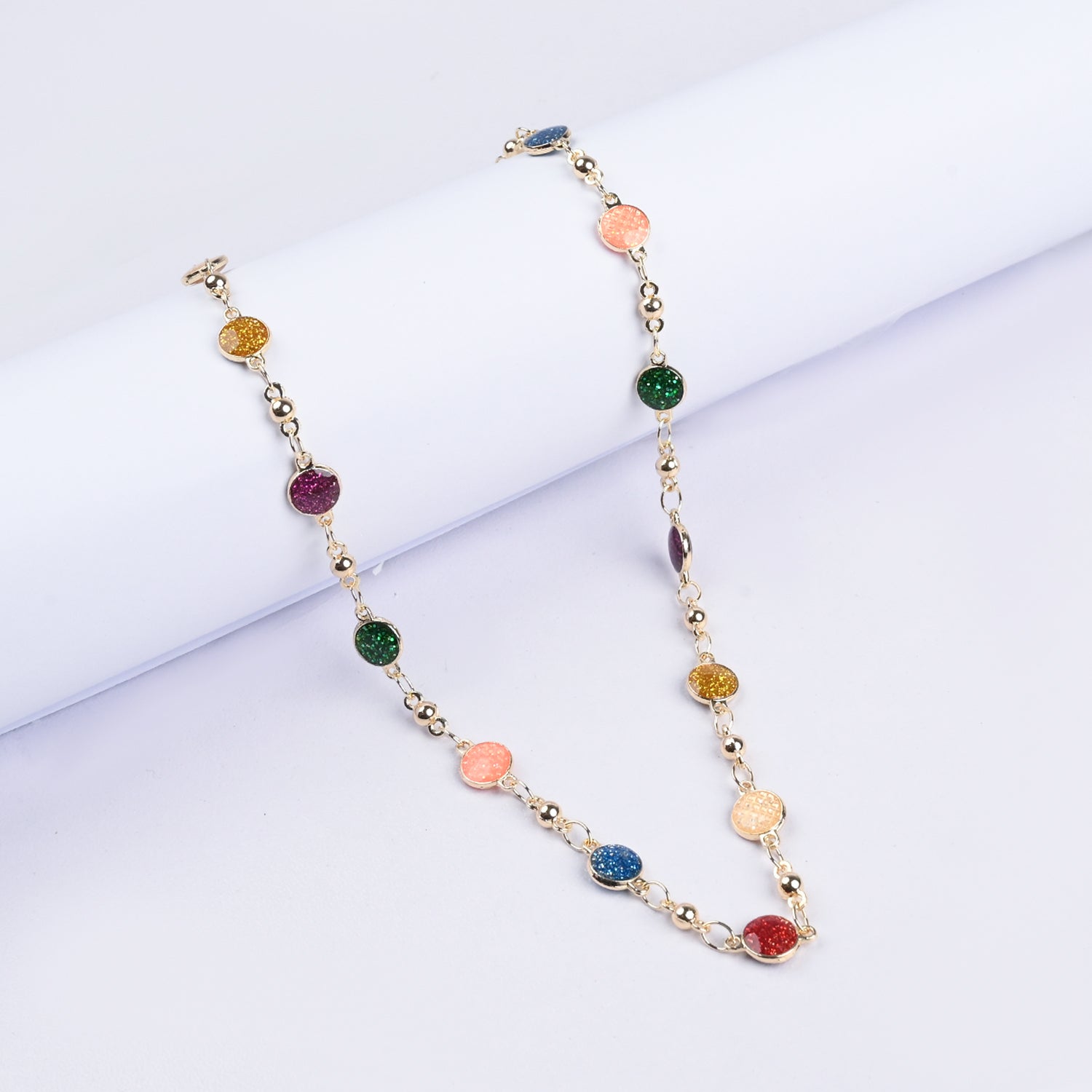 Brighten up your child’s look with this vibrant, multicolored necklace featuring a golden chain and playful, colorful elements. Lightweight, stylish, and comfortable to wear, it’s perfect for parties, daily outfits, and gifting young accessory lovers.