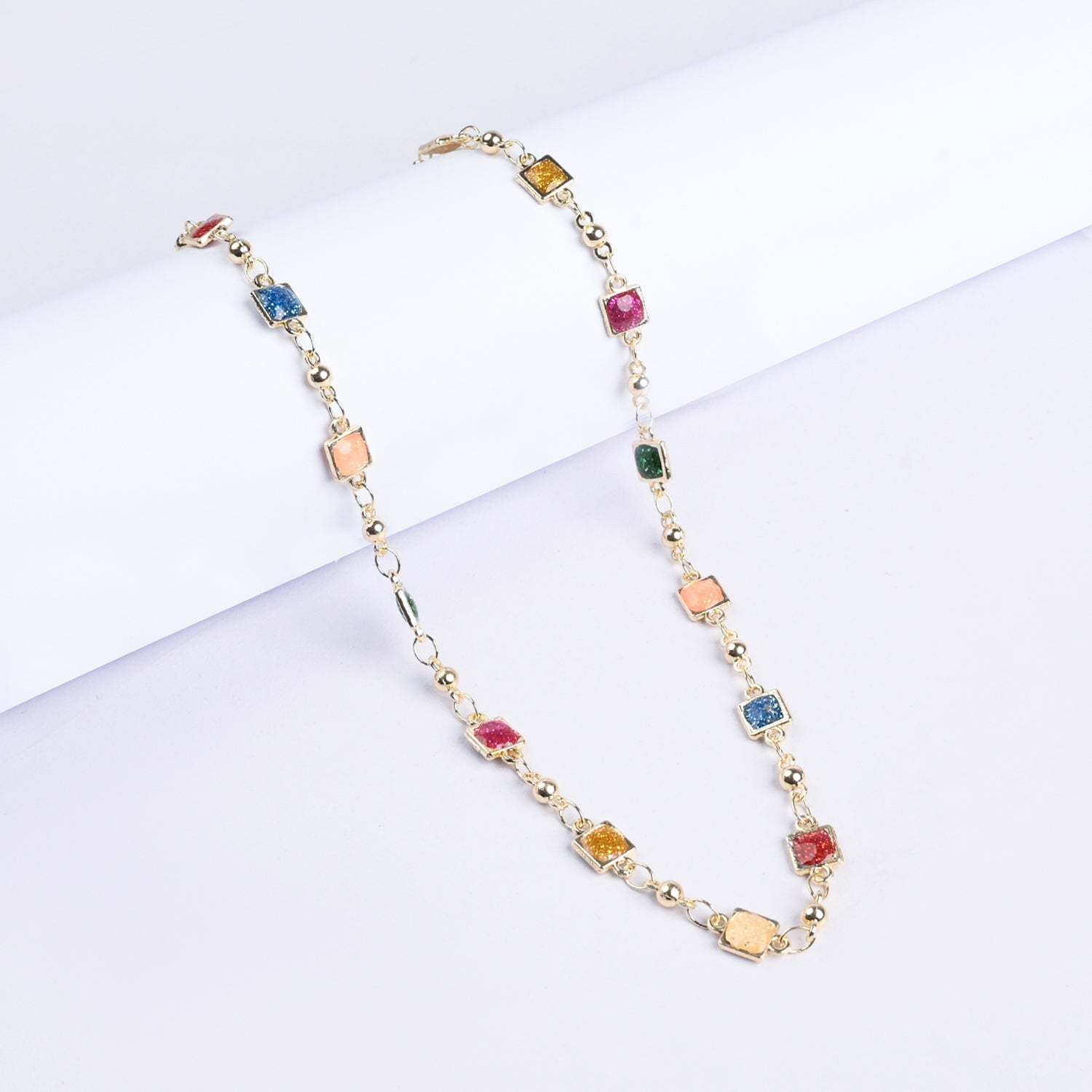 Brighten up your child’s look with this vibrant, multicolored necklace featuring a golden chain and playful, colorful elements. Lightweight, stylish, and comfortable to wear, it’s perfect for parties, daily outfits, and gifting young accessory lovers.