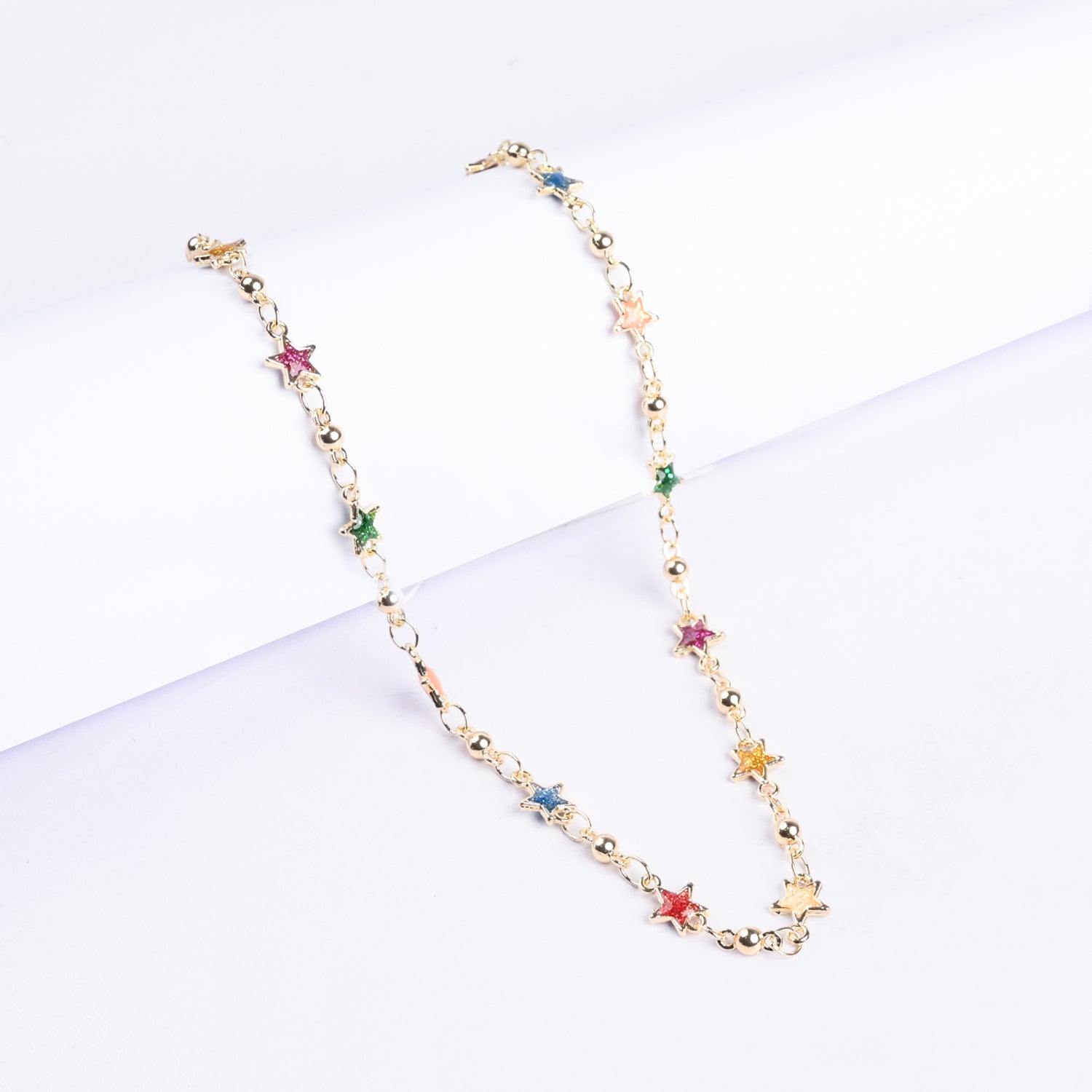 Brighten up your child’s look with this vibrant, multicolored necklace featuring a golden chain and playful, colorful elements. Lightweight, stylish, and comfortable to wear, it’s perfect for parties, daily outfits, and gifting young accessory lovers.