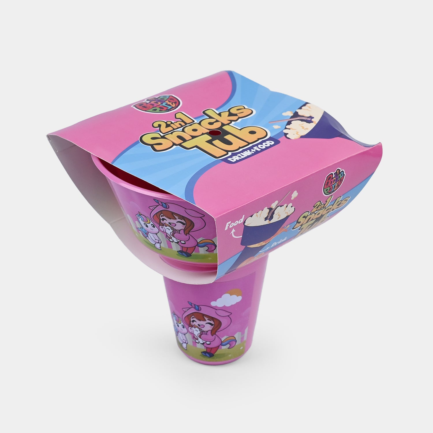 2-in-1 design: snack bowl + cup