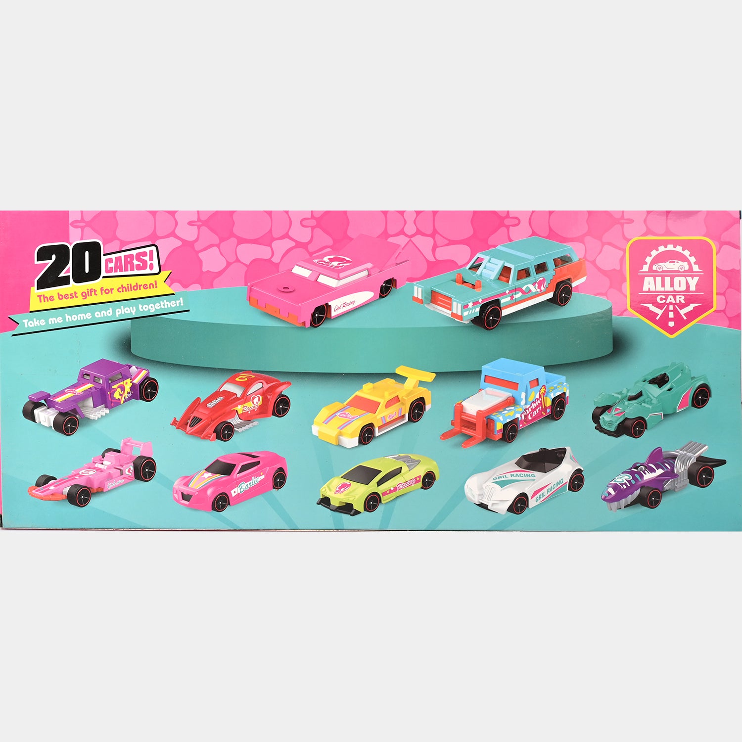 A 20-piece set of miniature die-cast alloy cars, each measuring 2.5 inches. Built from durable alloy for long-lasting play, these compact vehicles offer portability and imaginative entertainment value.