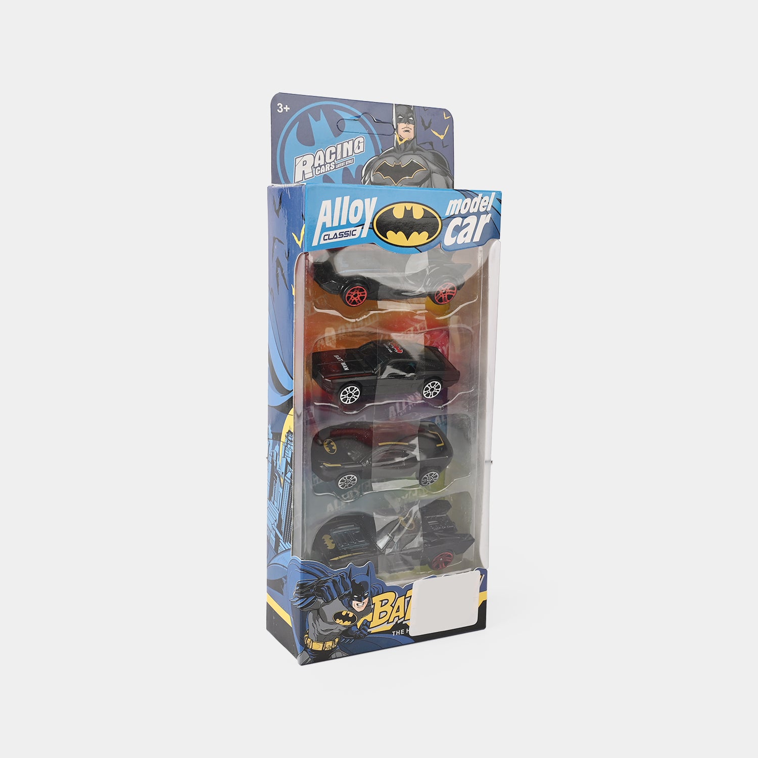Alloy Slided Cars features 4 die-cast Batman vehicles crafted from quality materials. Perfect for collectors and young fans alike, this set offers authentic designs suitable for display or play.