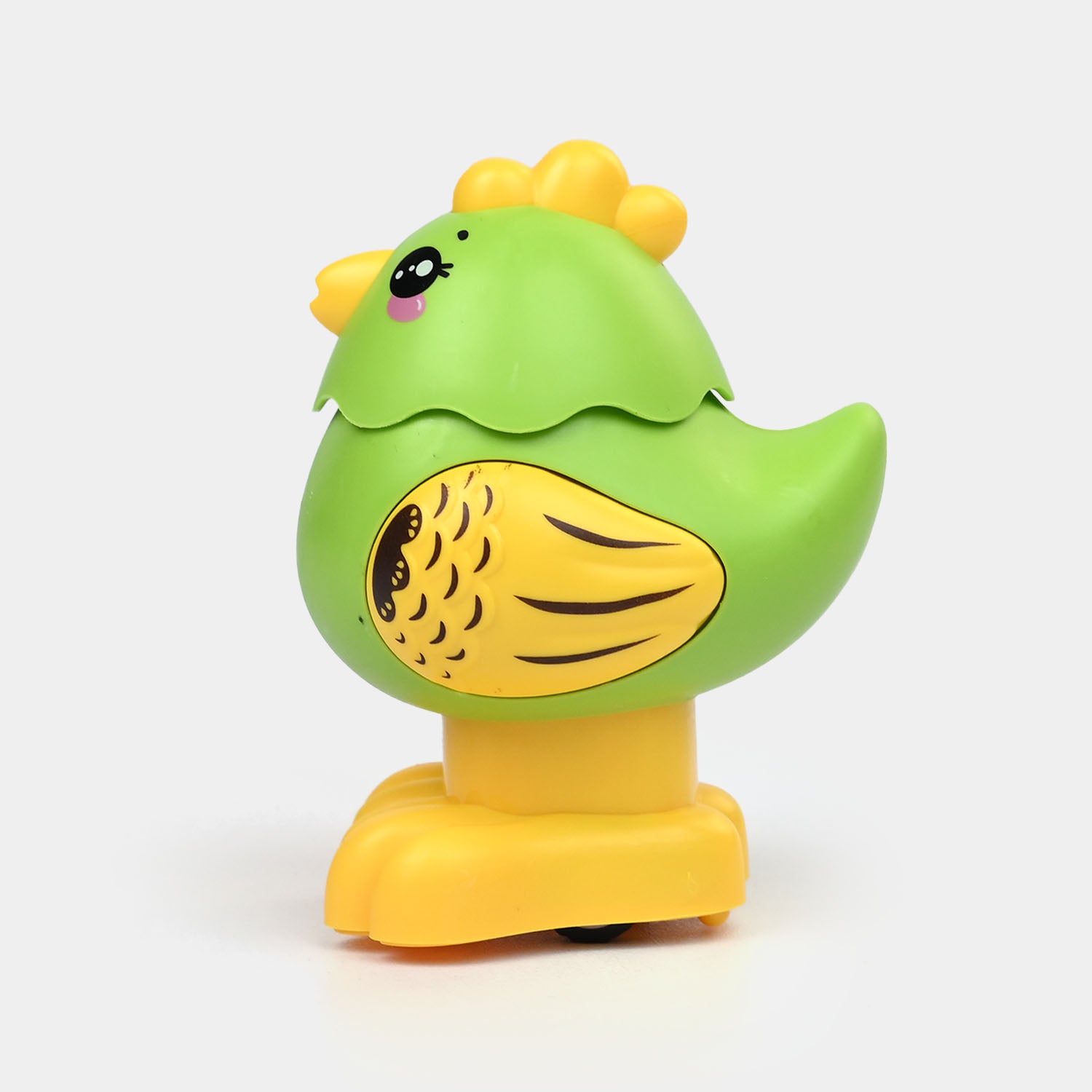 Adorable and colorful bird toy with a green body and yellow accents. Perfect for kids, this playful friction toy sparks imagination and adds fun to any playtime.