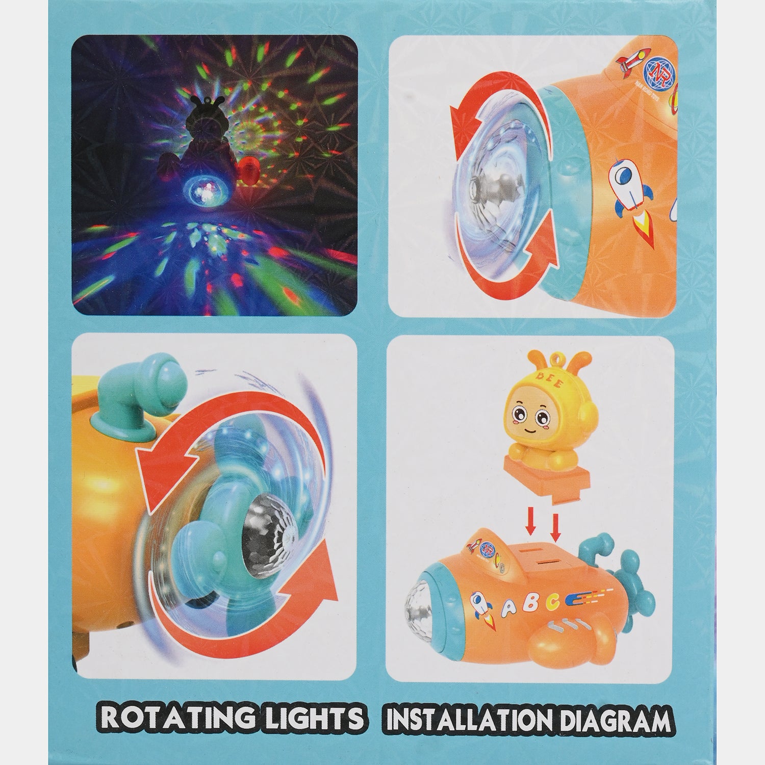 | Design | Orange spaceship style with bee character |