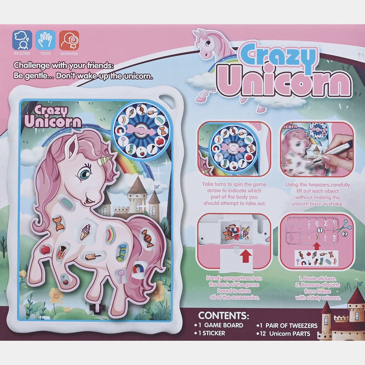 Get ready for giggles and focus with the Crazy Unicorn board game! Perfect for kids ages 4+, this game challenges players to use tweezers to carefully remove items from the unicorn without setting off the buzzer.
